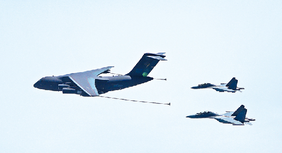 晨曦微露,秋风渐起,南国某机场引擎轰鸣,空军航空兵某旅多架战机蓄势待发。战机升空后迅速编成战术队形,采取隐蔽出航方式飞赴任务空域。低空突防、电磁对抗、多目标拦截……加油训练结束后,战机编队接续展开高强度战术课目训练,燃油消耗较大,编队随即再次进行空中加油。