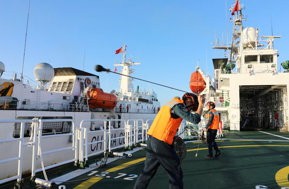 近日,中国海警局直属第二局白塔舰、玉环舰连续救助2名海上受伤渔民,架起东海“生命通道”。