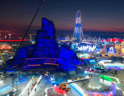 第二十七届哈尔滨冰雪大世界主塔“冰灯启梦”封顶