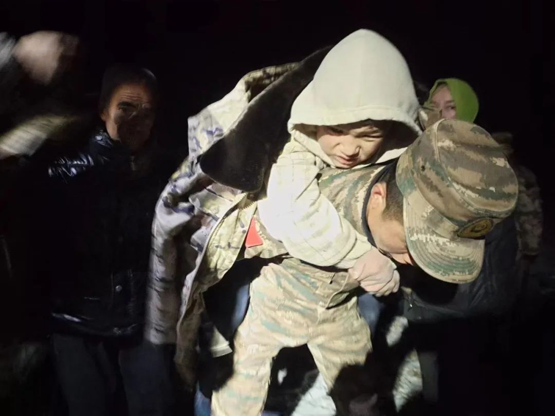 2023年12月19日03时16分,武警甘肃总队临夏支队官兵到达刘集乡阳屲村迅速展开救援。目前已成功救助1名儿童和1位老人。
