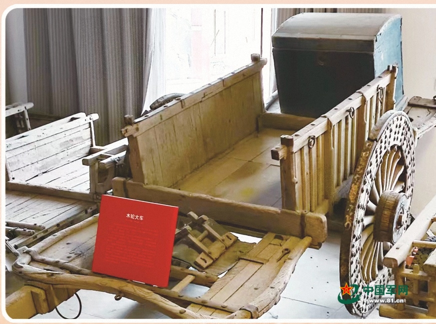 在上千件藏品中,一辆斑驳的木轮大车格外显眼,车轮上的铁箍锈迹斑斑,车辕的木纹被磨得光滑发亮。笔者了解到,这辆木轮大车的背后,是一段支前民兵用生命守护物资的往事。