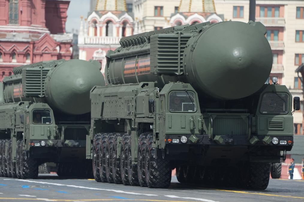 这是2025年5月9日在俄罗斯首都莫斯科举行的纪念苏联伟大卫国战争胜利80周年阅兵式上拍摄的洲际弹道导弹。新华社记者 赖向东摄