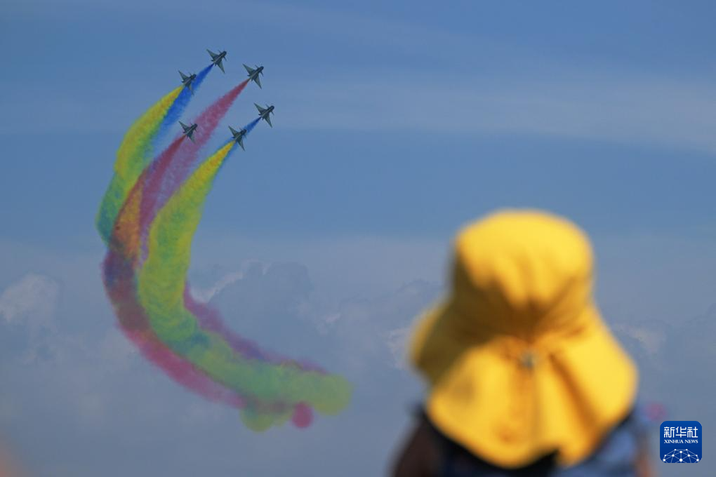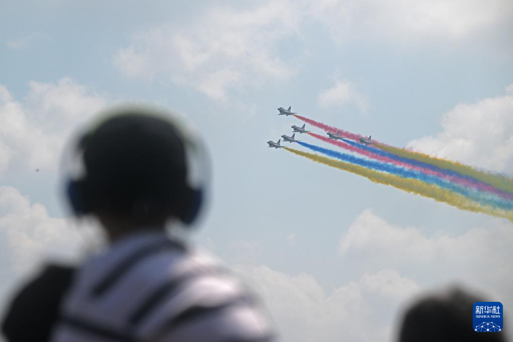 2月7日,在新加坡樟宜展览中心,中国空军八一飞行表演队进行飞行表演。新华社发(邓智炜摄)