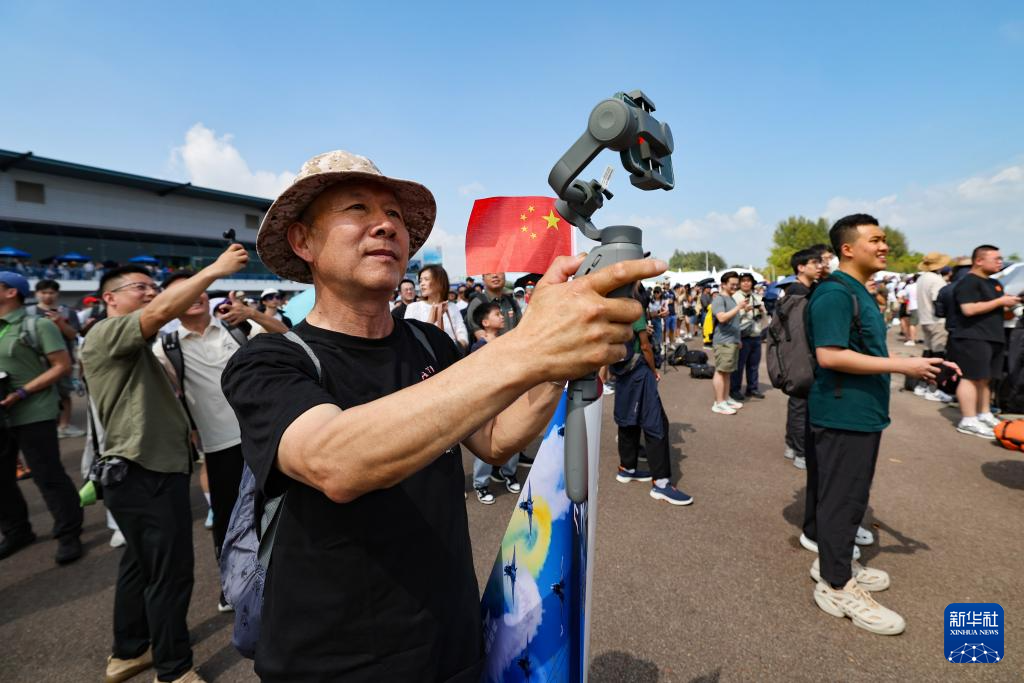 2月7日,在新加坡樟宜展览中心,观众观看中国空军八一飞行表演队的飞行表演。新华社发(邓智炜摄)