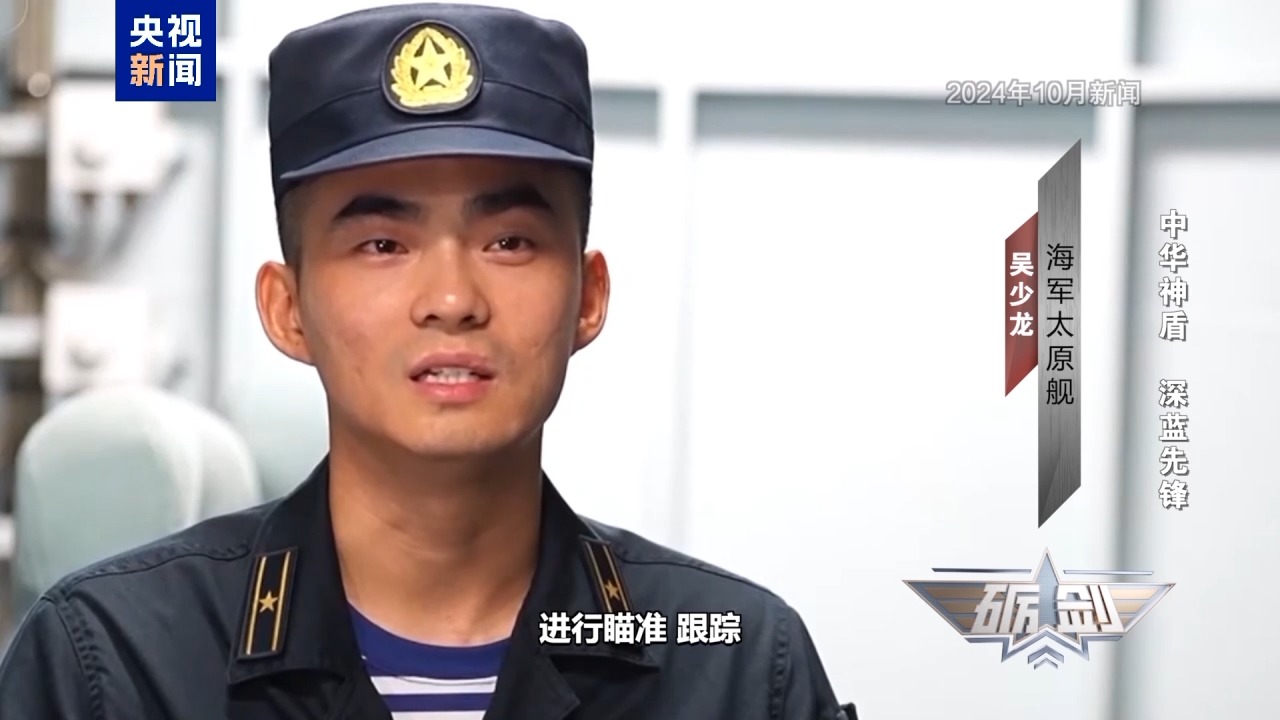 海军太原舰吴少龙:我们也是全程对它进行瞄准、跟踪,随时都能一箭飞空。它们在对我们舰进行威慑的同时,我们又何尝不是拿着“匕首”抵着它。