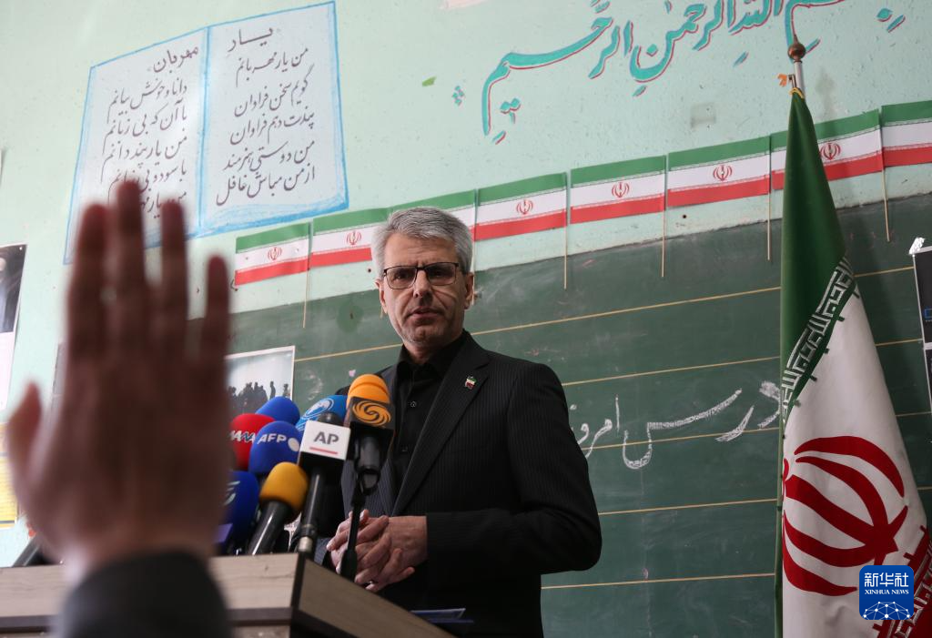 3月3日,伊朗外交部发言人巴加埃在德黑兰的沙希德·马哈拉提学校内举行新闻发布会,这座学校在美以军事打击中遭到破坏。