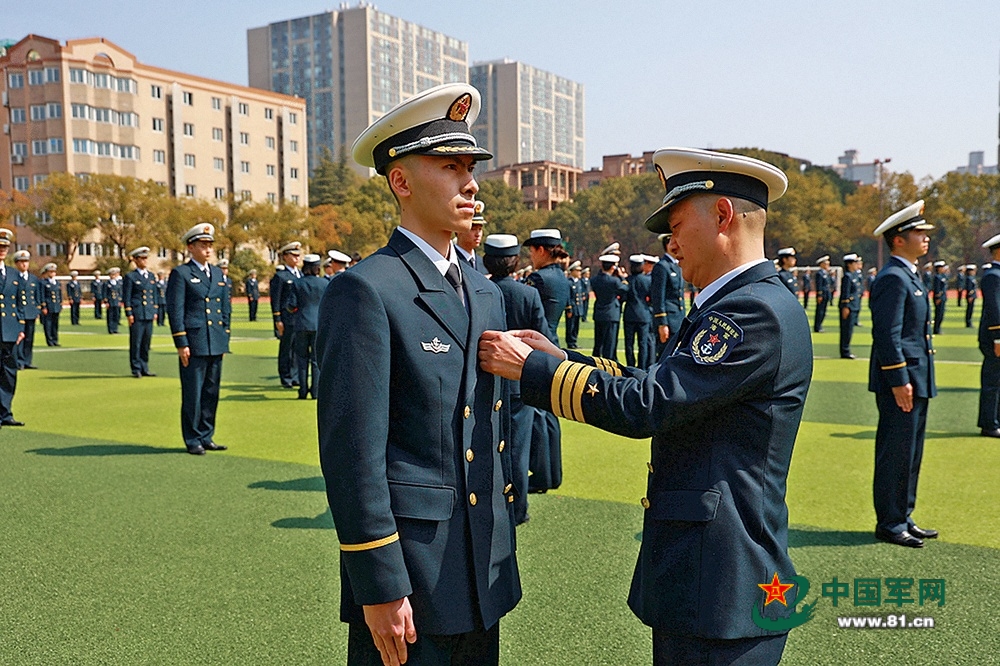 仪式现场,军乐雄壮,全体学员军容严整、列队肃立。在全体官兵和受邀学员家长代表的注视下,战友们相互佩戴勋表、互敬军礼。那枚承载奋斗与汗水的勋表略章,在深色军装的映衬下格外醒目。现场观礼的学员家长代表自豪之情溢于言表。